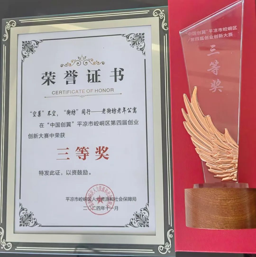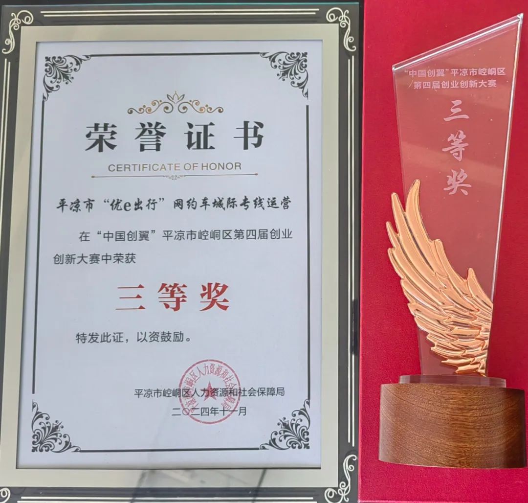 孵化基地由胡金鵬代表平?jīng)鲂履芰科嚪?wù)有限公司參賽的《平?jīng)鍪小皟?yōu)e出行”網(wǎng)約車城際專線運營》項目獲得創(chuàng)業(yè)項目組三等獎