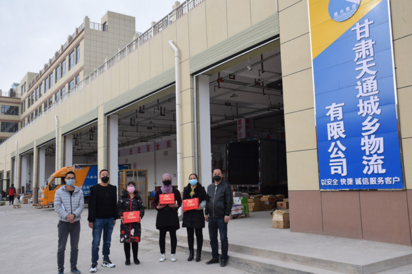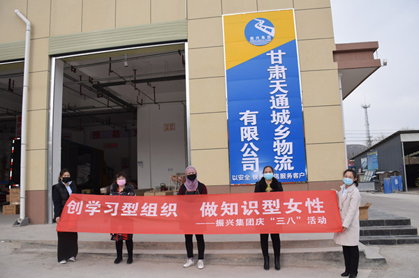 在慶祝三八婦女節(jié)儀式上,集團公司副董事長鄭龍和副總經(jīng)理蘭小偉為全體女職工發(fā)放了福利并合影。