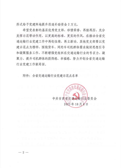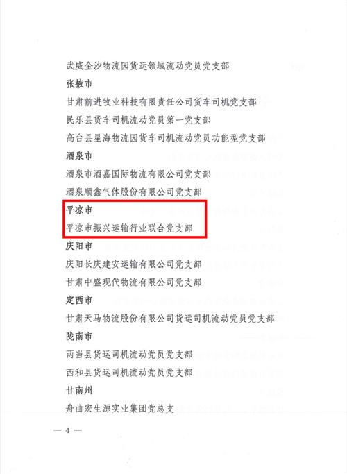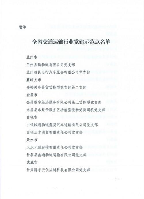 近日,平?jīng)鍪姓衽d運(yùn)輸行業(yè)聯(lián)合黨支部被甘肅省交通運(yùn)輸行業(yè)委員會(huì)授予“全省交通運(yùn)輸行業(yè)黨建示范點(diǎn)”。