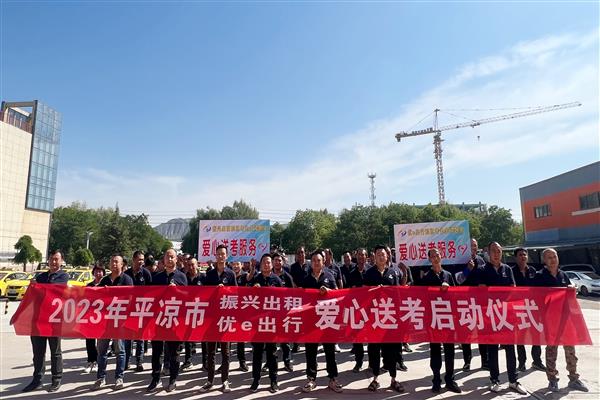 張貼有“愛心送考車”標志的出租車、網約車整齊排列在公司院內。十余年來,振興集團出租車、網約車用實際行動助力一屆又一屆莘莘學子開啟人生新征程。劉敏鑫經理向連續(xù)多年參與“愛心送考”的駕駛員宣貫了平涼市交通局印發(fā)的《平涼中心城區(qū)2023年“愛心送考”活動實施方案》文件精神,傳達了公司“揚帆起航、助力高考”的活動愿景。楊小軍作為駕駛員代表承諾:我們每一位駕駛員將幫助他人,規(guī)范服務,在高考期間,會把每一位考生安全及時送達考點。