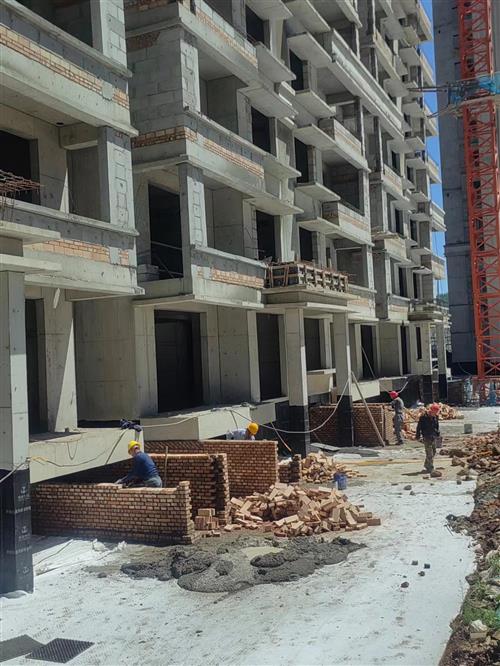 振興·龍澤灣項目4#樓砌體工程進行中。
