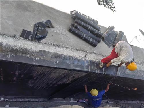 振興·龍澤灣項目3#樓后方下水道防水工程進行中。