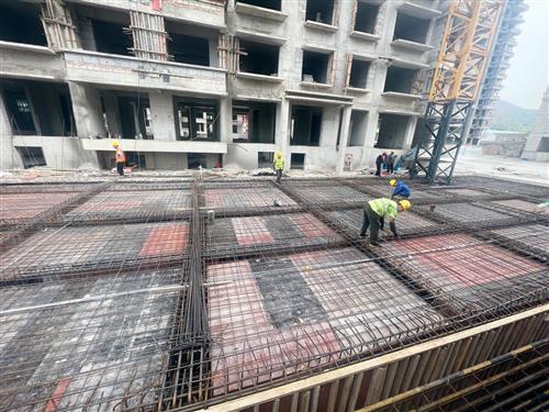 振興·龍澤灣建設(shè)項目地下室鋼筋安裝中。